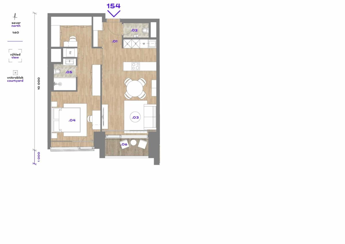 Ideal layouts for couples looking for timeless housing in a neighborhood teeming with life. The living room is connected to the kitchen, creating an open space that is pleasantly bright due to a large-format window.